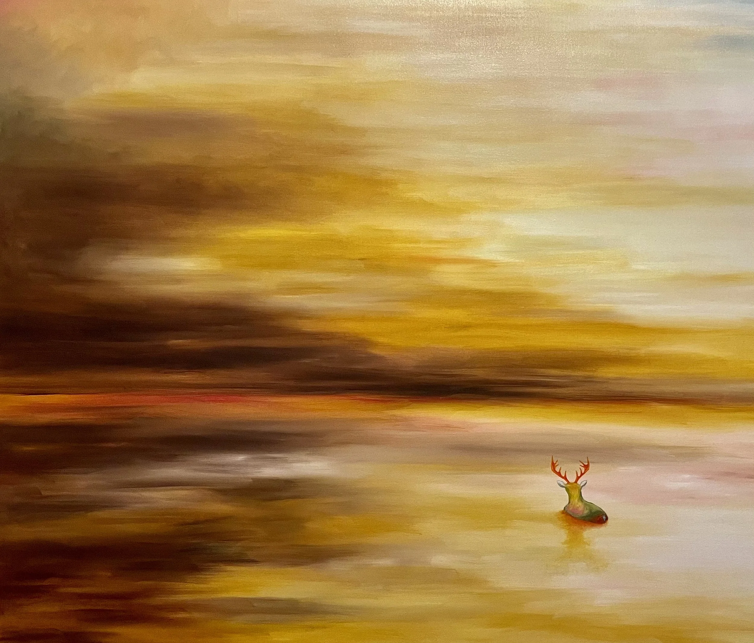 “Deer, one headlight.” Oil on linen. 2023. 60” X 48”