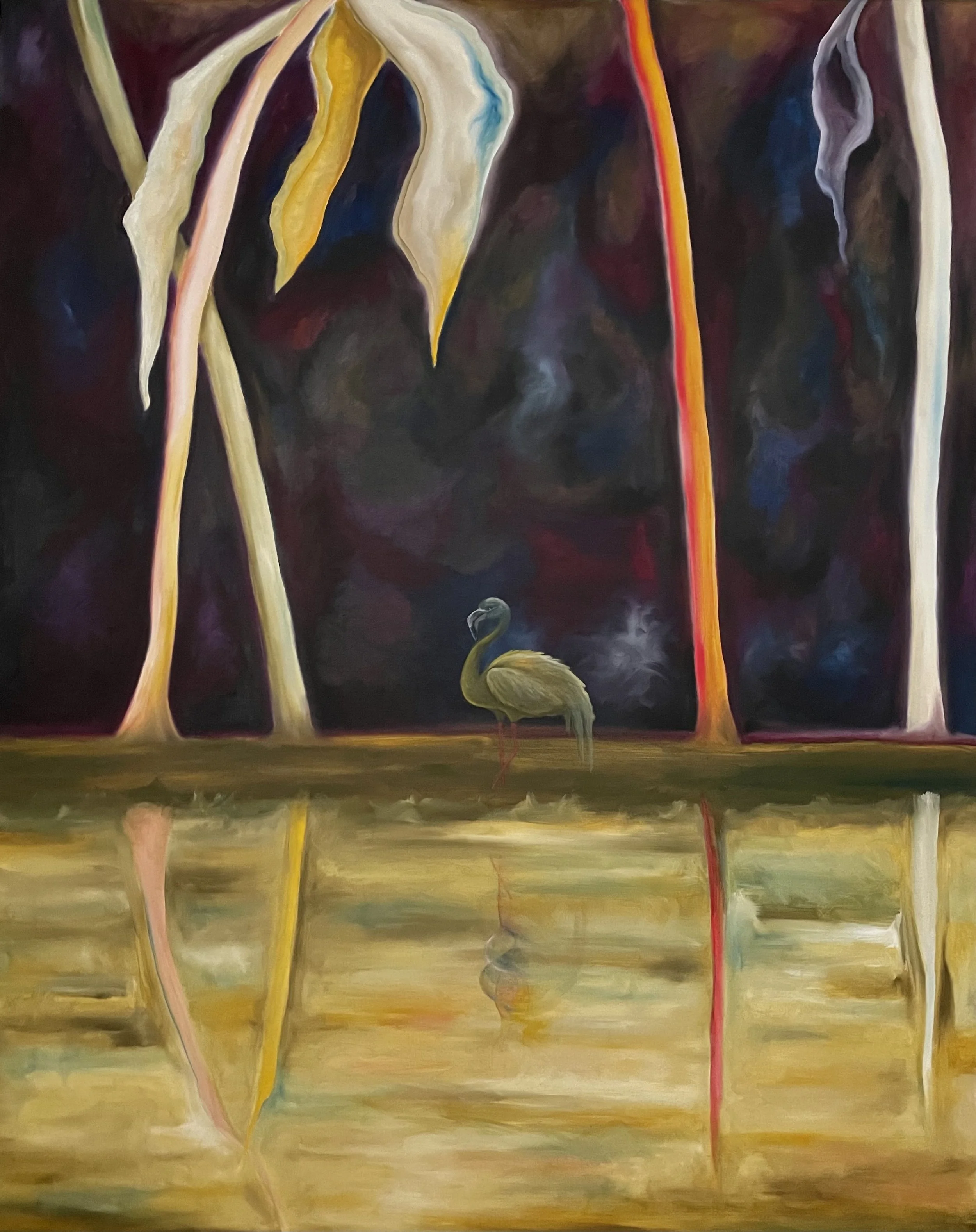 “Flamingolightly” Oil on linen. 2023. 48” X 60”